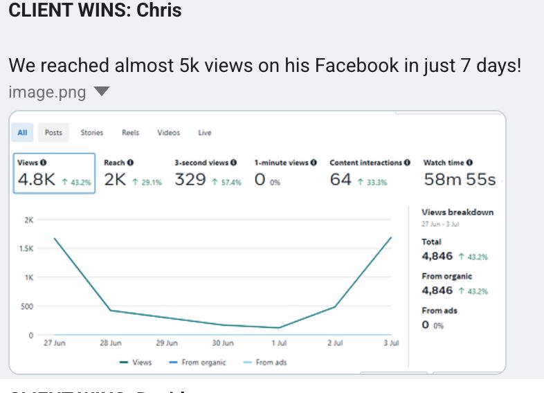 We have a have a lot of results, you will see all of our case studies once you book a call, but on top of that, here's a quick summary: Rob Sedwick $80K in pipeline value within his first couple of videos, Oliver Chapman $21K in pipeline value within his first 10 videos posted on social media, Edwin Wald 500 views daily from his first 7 days of posting, the list can go on.